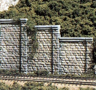 Woodland Scenics Retaining Walls are plaster castings that are easy to color. They can be used alone, installed adjacent to each other to create straight or curved walls, or used with Tunnel Portals. Retaining Walls can be cut ot varying heights to create stepped wing walls.