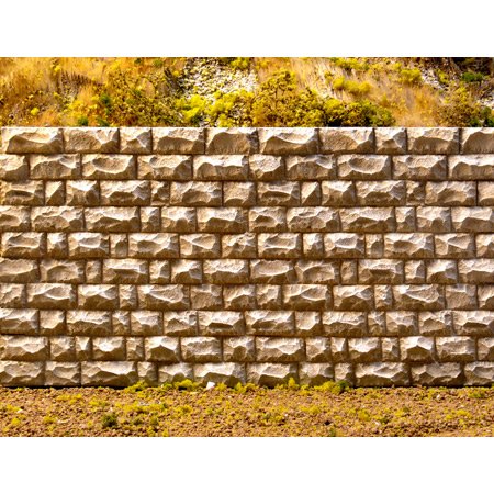 Woodland Scenics Retaining Walls are plaster castings that are easy to color. They can be used alone, installed adjacent to each other to create straight or curved walls, or used with Tunnel Portals. Retaining Walls can be cut ot varying heights to create stepped wing walls.